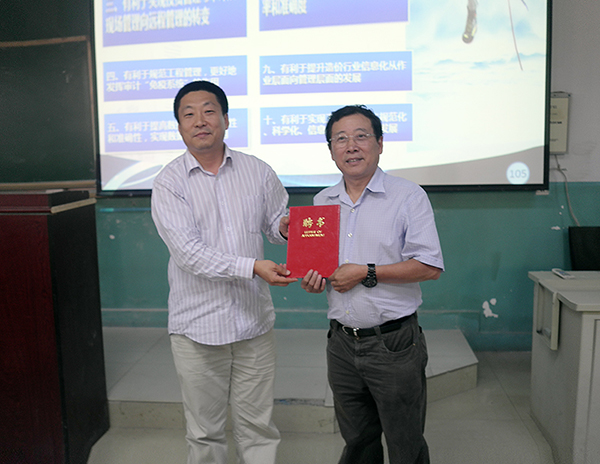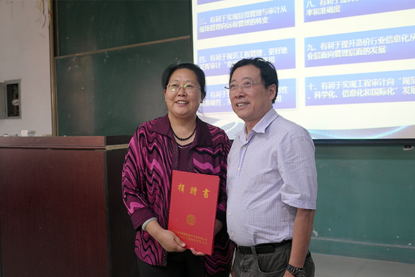 2014年9月13日,應(yīng)長春工程學(xué)院邀請(qǐng),我公司董事長周和生先生為該校管理學(xué)院學(xué)生講授“建設(shè)項(xiàng)目投資管理及審計(jì)信息化”課程,且受聘為長春工程學(xué)院客座教授。我司向長春工程學(xué)院捐贈(zèng)“建設(shè)項(xiàng)目全過程投資管理及審計(jì)系統(tǒng)”軟件(價(jià)值145萬元),大力支持該校教學(xué)工作。