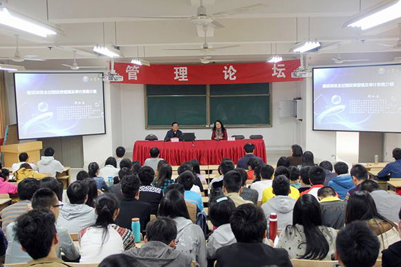 儀式結(jié)束后,周和生董事長(zhǎng)為學(xué)院師生們作了題為“建設(shè)項(xiàng)目全過程投資管理及審計(jì)系統(tǒng)介紹”的學(xué)術(shù)講座。