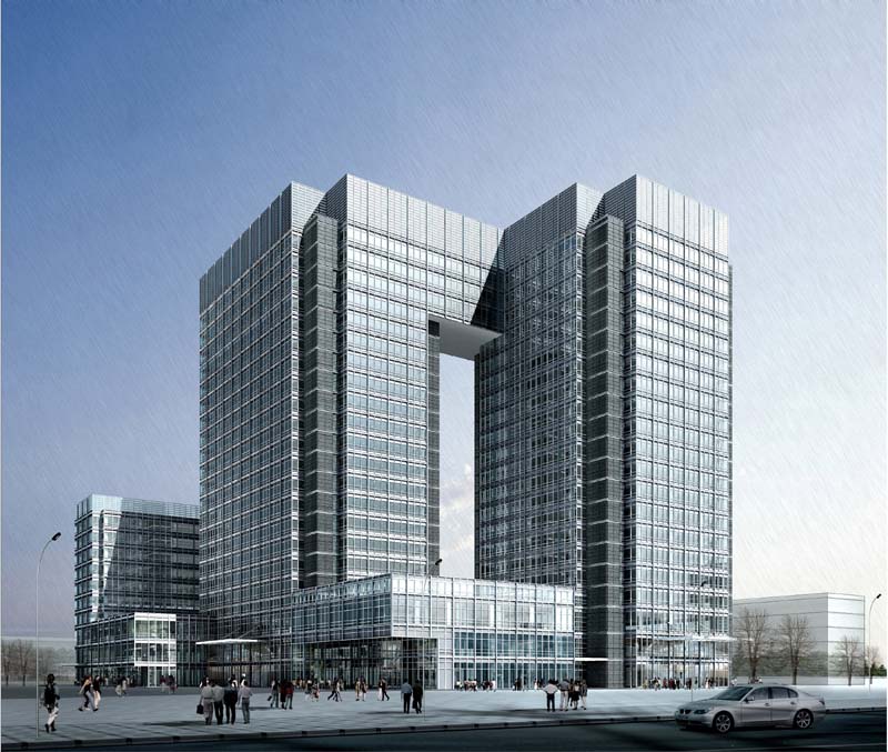 北京科技大學信息樓、綜合樓、科技實驗樓建于北京市海淀區學院路30號北京科技大學校園西南角,南臨北四環,西臨學院路,工程建設用地約2.65公頃,地下三層,地上最高21層,框架-核心筒結構,結構豎向在地上三層由大底盤變化為三個獨立塔,其中科技實驗樓出大底盤屋面為5層,另兩塔在第19、20、21層由架空連體連接為整體,結構總高度為79.100m,總建筑面積102294平方米,合同工期為905日歷天,工程造價3.6億元.